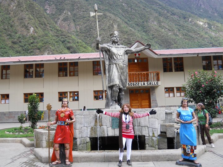 Além destas cidades, fiquei alguns dias em Aguas Calientes, também conhecida como Machu Picchu Pueblo, ponto mais perto para chegar a Machu Picchu, que dispõe de estação de trem a qual leva os turistas a este Santuário. Fica à beira do rio Urubamba, transmitindo um pouco da energia das ruínas Incas. Esta cidade dispõe de atrações, paisagens e curiosidades incríveis, destacando os banhos termaisque garantem aos visitantes relaxamento, purificação e renovação das energias antes de chegar a Machu Picchu. As temperaturas das piscinas termais variam de 38º a 46ºC e a visitação é aberta até às 20h. Em uma das noites que passei nesta cidade, fui à Plaza Manco Càpac, onde se concentram os principais hotéis, lojas, restaurantes e pontos turísticos como a Igreja da Virgen del Carmen, revestida em pedras, e a famosa estátua do personagem que deu nome ao local. Neste dia havia uma “banda” que me fez dançar como nunca. Foi uma delícia. O artesanato andino é responsável por boa parte da economia da cidade. Na feirinha havia uma variedade de peças e objetos artesanais, confeccionados pelos próprios moradores. Apesar de pequeno, o museu Manuel Chavez Ballón, próximo a Aguas Calientes, no caminho para Machu Pichu, preserva algumas peças e objetos incas importantes que ajudam a contar um pouco da história e da cultura dos antigos povos que passaram por ali.