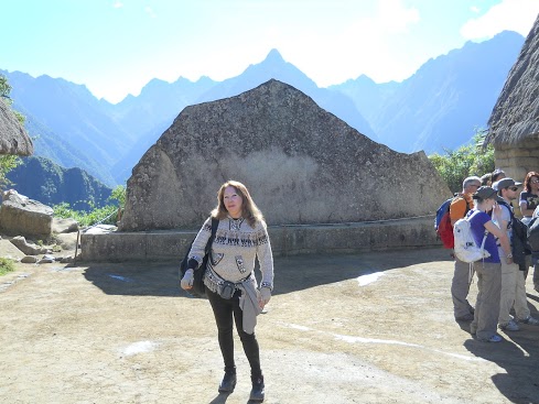 Como Aguas Calientes é a cidade mais próxima de Machu Picchu, pode-se chegar às ruínas incas de várias formas: trem ou micro-ônibus ou a pé (um trajeto de, mais ou menos, 1:30h). Todas as opções permitem a apreciação de uma subida fascinante. Optei para ir de Aguas Calientes para Machu Pichu de trem, mas é possível partir diretamente de Cusco para Pisác e, depois, para Ollantaytambo a 21km de Urubamba, onde há o Templo del Sol, Manaracay ou Salão Real, o Incahuatana e o banho da princesa, onde pega o trem, à noite, para Aguas Calientes. Machu Picchu é um santuário histórico considerado patrimônio cultural e natural da humanidade e significa montanha velha. Foi criado para conquistar a floresta e/ou proteger o império. Sua construção é atribuída ao Inca Pachacutec. Eu tinha uma ideia distante da realidade de Machu Picchu. Fiquei surpresa ao me deparar, não com uma cidade real, mas com um verdadeiro santuário, de beleza extraordinária, onde é permitido ficar ou algumas horas ou durante o dia e retornar no final da tarde.