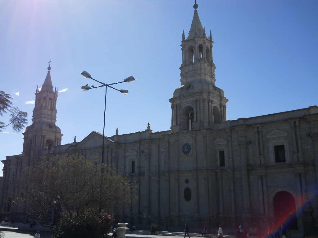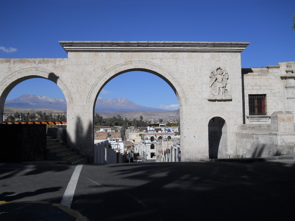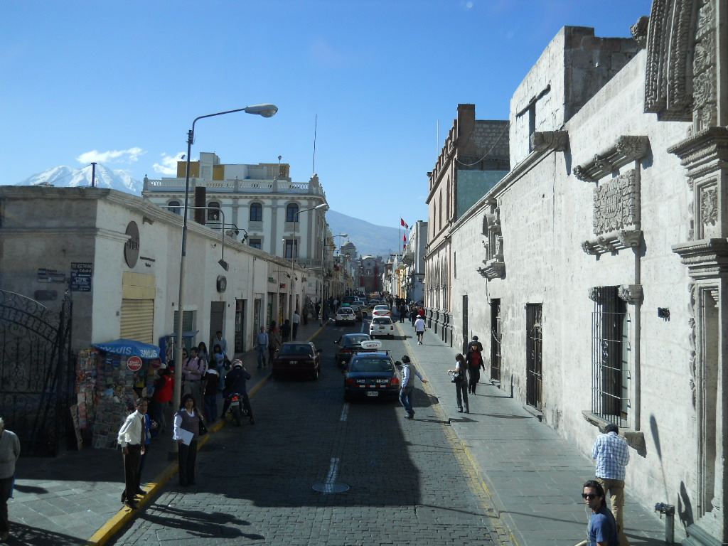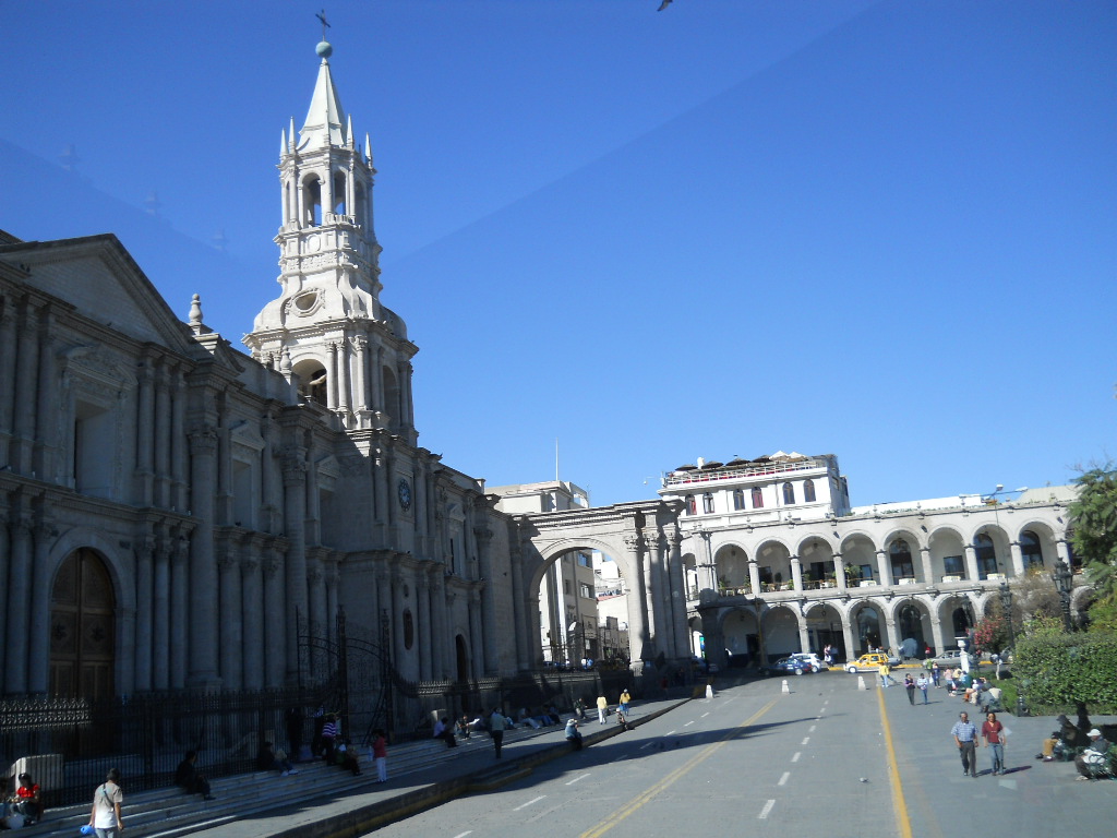 Depois fui para Arequipa, que foi a capital da era colonial da região de Arequipa. Minha grande motivação foi conhecer os três vulcões adormecidos que cercam a cidade: El Misti (em formato de cone, altura de 5.822m), Chachani (altura de 6.057) e Pichu-Pichu (formado por sete picos, altura de 5.650m). Todos não extintos, mas latentes quando lá estive. Esta cidade conta com edificações barrocas construídas com silhar, uma pedra vulcânica branca; o centro histórico é ancorado pela Plaza de Armas, praça principal imponente, ladeada ao norte pela Catedral Basílica neoclássica, construída no século XVII, que abriga um museu com objetos religiosos e obras de arte.