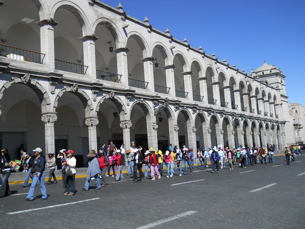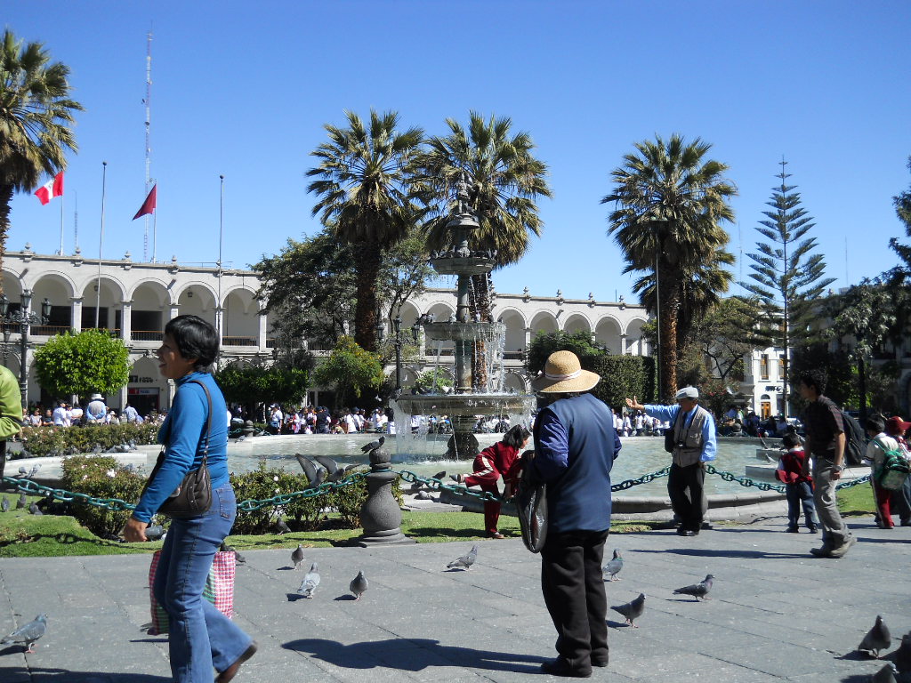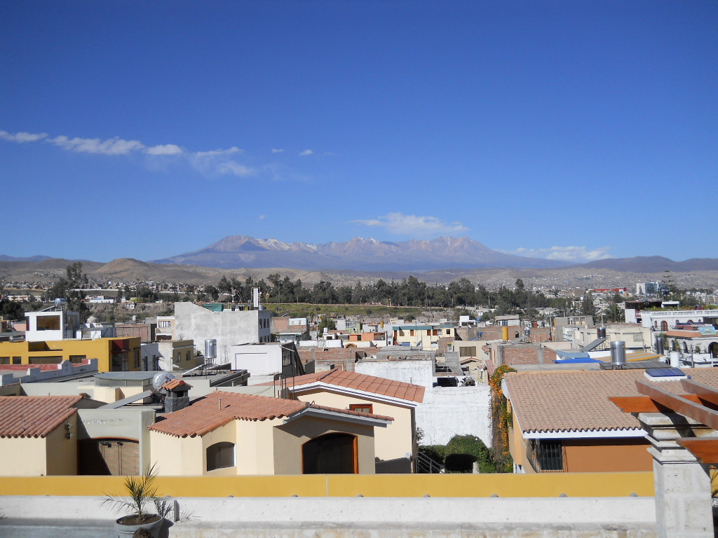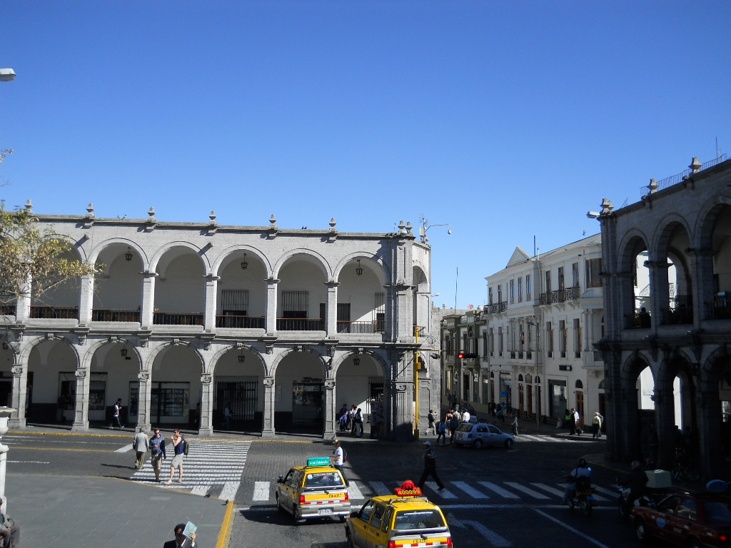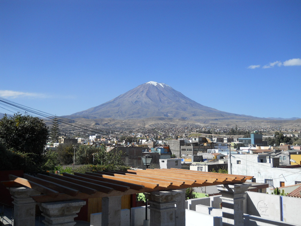 Depois fui para Arequipa, que foi a capital da era colonial da região de Arequipa. Minha grande motivação foi conhecer os três vulcões adormecidos que cercam a cidade: El Misti (em formato de cone, altura de 5.822m), Chachani (altura de 6.057) e Pichu-Pichu (formado por sete picos, altura de 5.650m). Todos não extintos, mas latentes quando lá estive. Esta cidade conta com edificações barrocas construídas com silhar, uma pedra vulcânica branca; o centro histórico é ancorado pela Plaza de Armas, praça principal imponente, ladeada ao norte pela Catedral Basílica neoclássica, construída no século XVII, que abriga um museu com objetos religiosos e obras de arte.