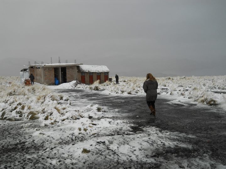 A caminho de Puno: muito frio, neve e névoa.