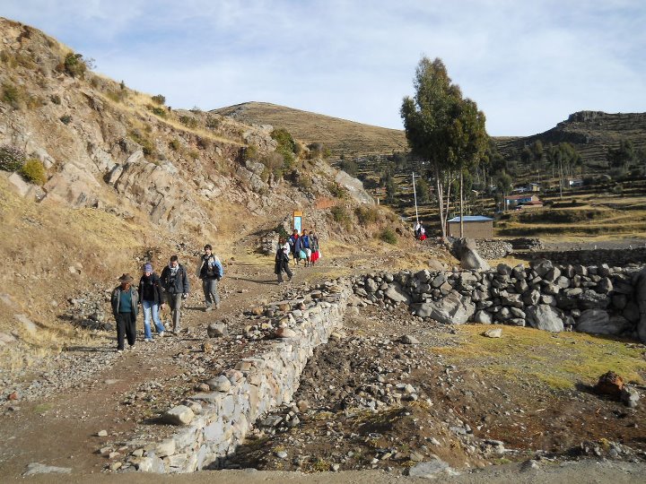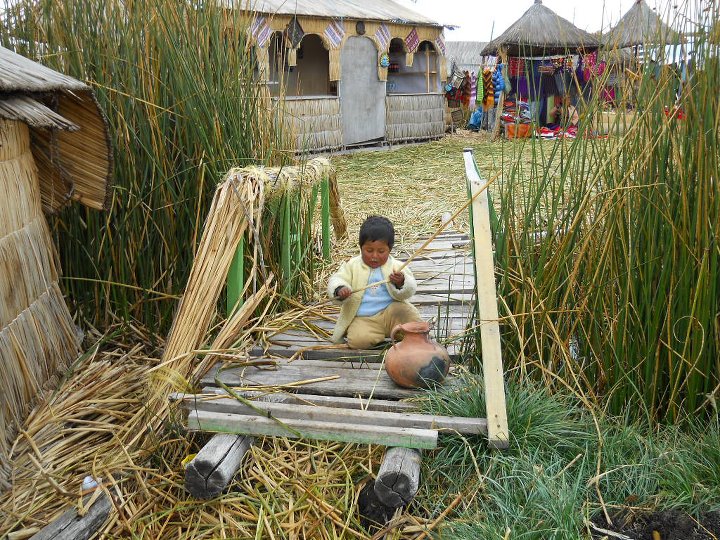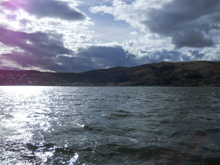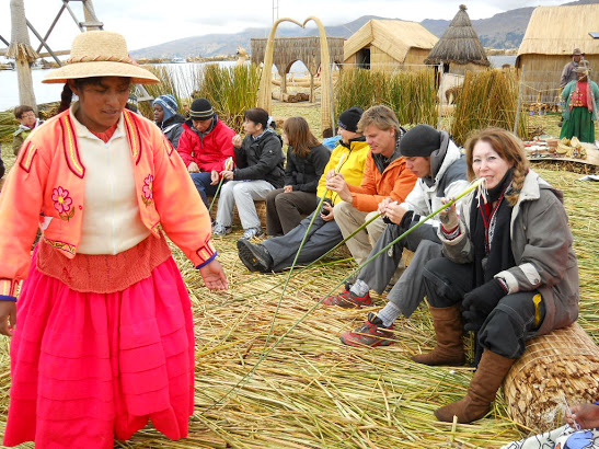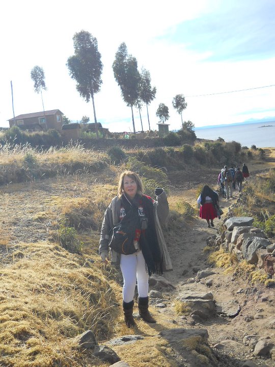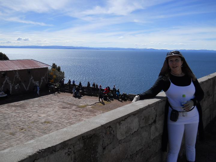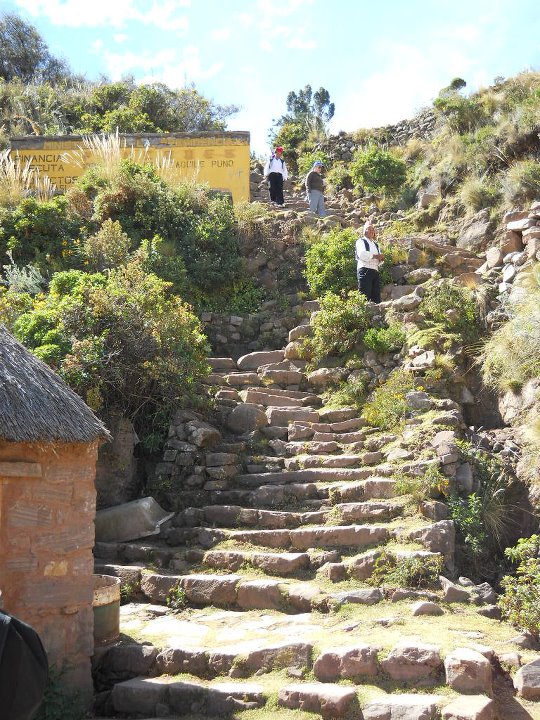 No entanto, foi em Amantani que fiz turismo vivencial, numa casa cuja família só falava quéchua. Para ter acesso a esta ilha, fomos de barco e quando desembarcamos, percorremos em torno de 2,5km montanha acima, passando por casas e plantações. Para chegarmos ao topo da ilha subimos uma escadaria enorme e cansativa, mas a vista era deslumbrante. Como o meu pacote incluía estadia (turismo vivencial), eu e mais duas mulheres fomos recebidas pela família que nos hospedou. A casa era muito simples, com uma estrutura mínima, como previsto neste tipo de turismo. A família só falava quechua. Por isto, recebemos uma lista de palavras e expressões quechua, traduzidas no idioma de cada um, o que facilitou a comunicação. O que significa quéchua? Quíchua (qhichwa simi ou runa simi), também chamado de quechua ou quéchua, é uma importante família de línguas indígenas da América do Sul, ainda hoje falada por cerca de dez milhões de pessoas de diversos grupos étnicos da Argentina, Bolívia, Chile, Colômbia, Equador e Peru, ao longo dos Andes. Possui vários dialetos inteligíveis entre si. É uma das línguas oficiais da Bolívia, Peru e Equador. Almoçamos e, depois, fomos à Plaza de Armas e ao Centro Cerimonial de Pachatata, que fica no centro da ilha. São ruinas da civilização pré inca, ainda usadas para rituais. À noite, em um fogão de lenha, o jantar foi preparado. Depois, tomamos banho frio, com um balde com água, e, depois, fomos a uma festa usando roupas típicas. Recomendo este tipo de turismo, embora reconheça que não é fácil. É um exercício de tolerância e paciência. Após dois dias, descemos um km montanha abaixo e embarcamos, novamente, em direção à Puno. A paisagem era de tirar o fôlego.