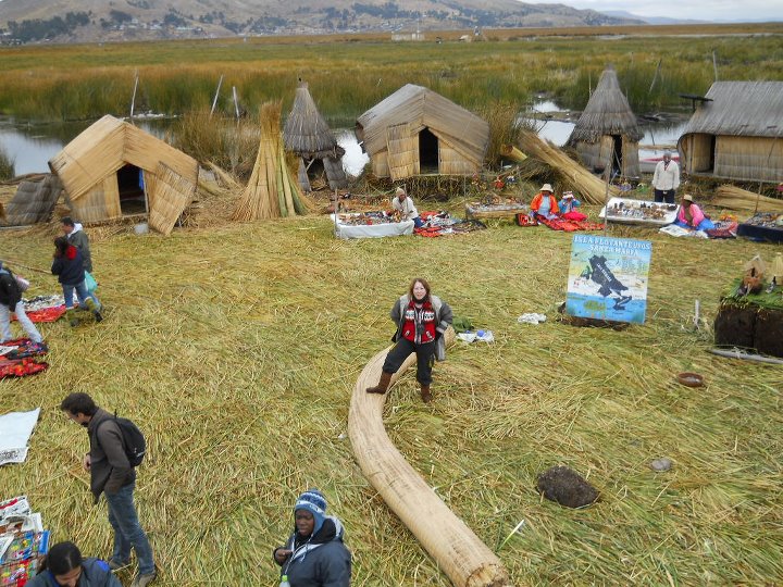 São muitas as ilhas no Titicaca, com destaque para as ilhas flutuantes Uros e Taquile. As ilhas flutuantes e as respectivas “cabanas” são construídas com uma vegetação de junco que há no Lago, denominada totora, a qual é usada, também, como alimento. Numa das fotos em Uros, vocês podem me ver experimentando este alimento.